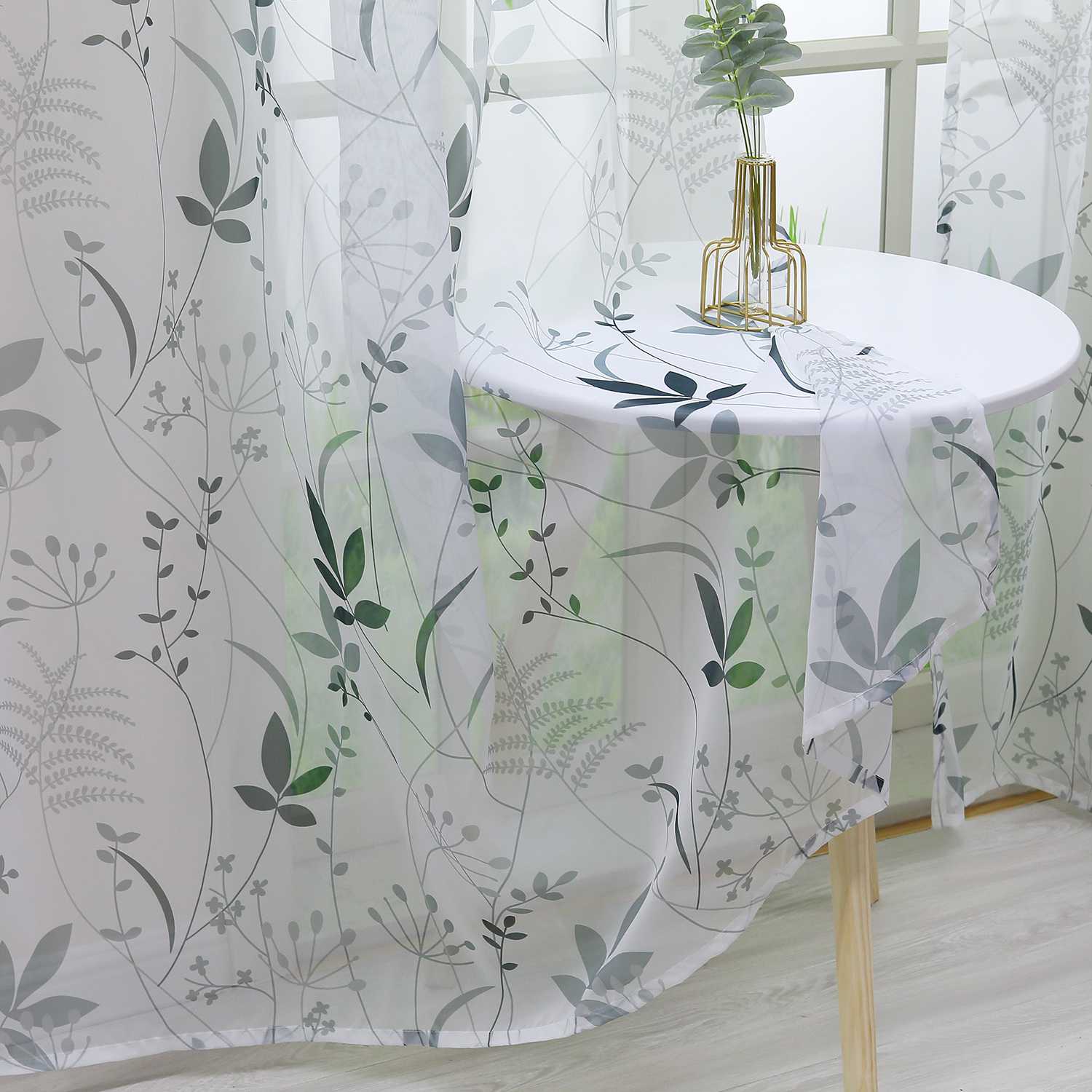 Transparenter Vorhang mit Blättermuster leicht Schutzfunktion Gartenstil 1 Stück - Joyswahl Transparenter Vorhang mit Blättermuster leicht Schutzfunktion Gartenstil 1 Stück - Joyswahl