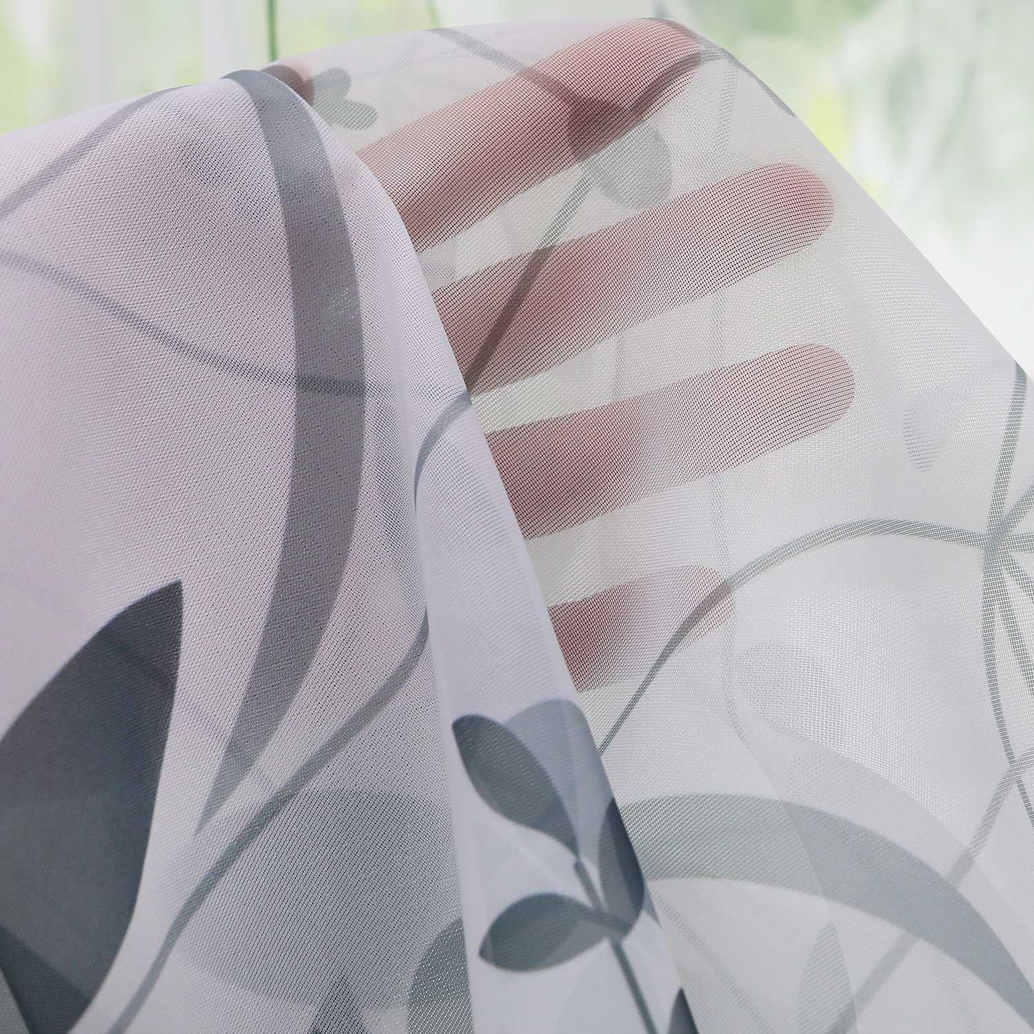 Diese transparente Gardine mit zartem Blattmuster bringt Frische und Leichtigkeit in dein Zuhause. Ideal für alle, die natürliches Design mit sanftem Lichtspiel verbinden möchten.