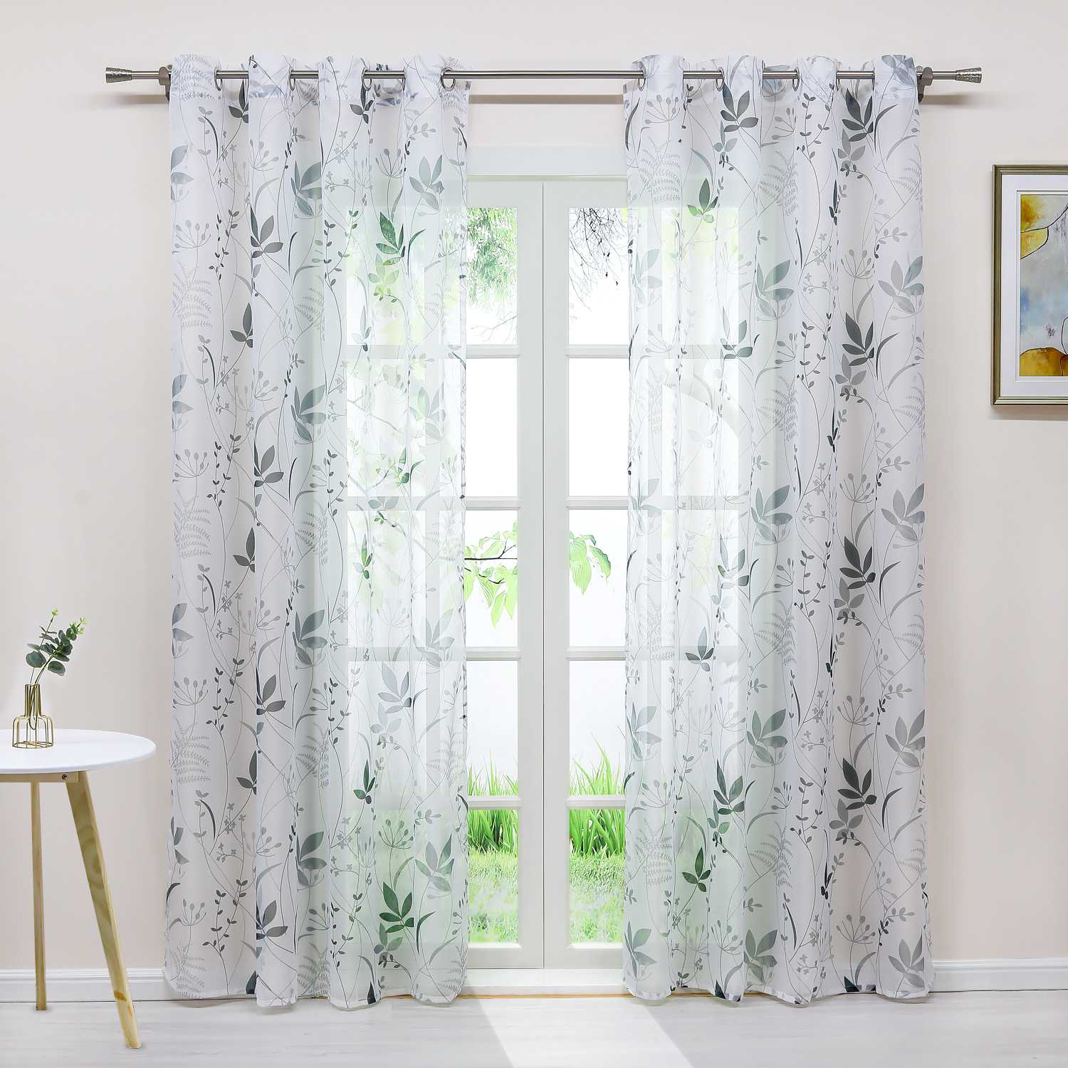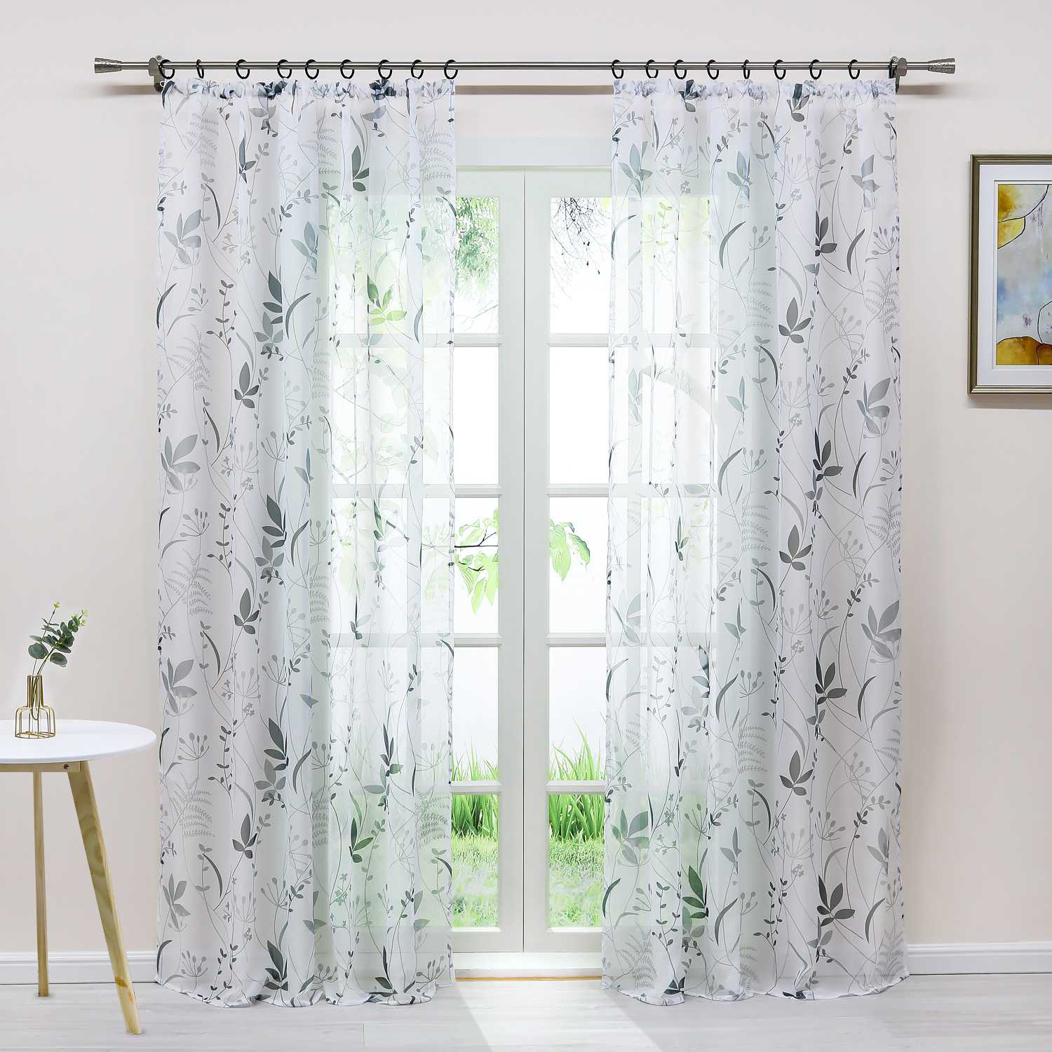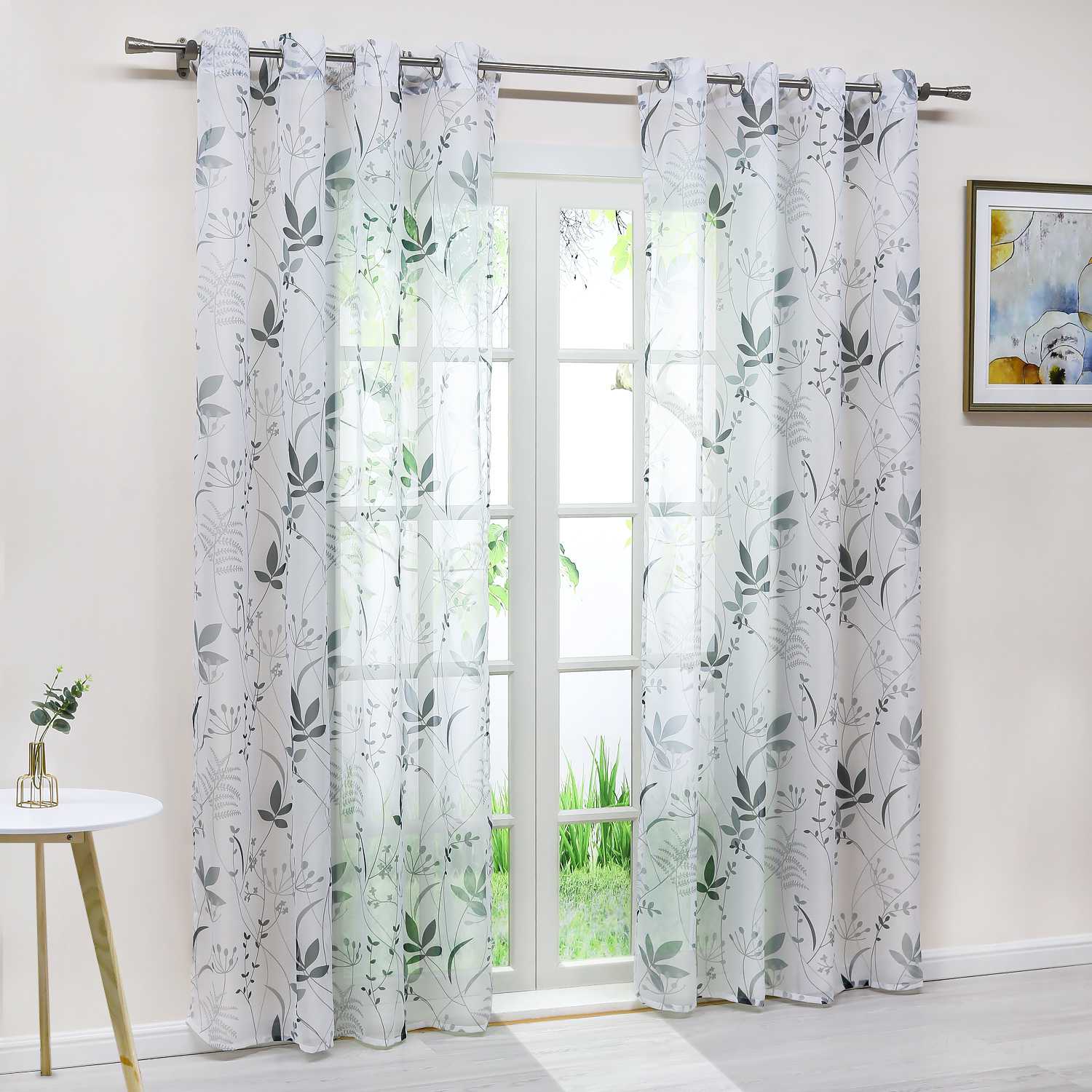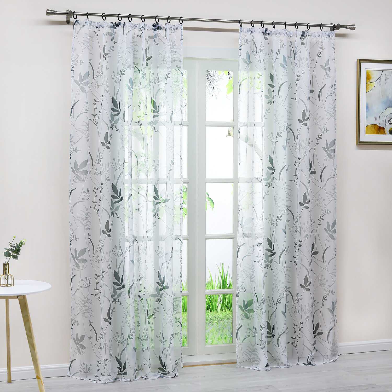 🌿 Voile-Gardine mit Pflanzenmuster – Natürlich leicht & stilvoll